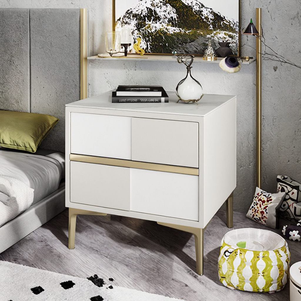Elevate your bedroom with the Raj Leather Nightstand Side Table. This stylish piece features a sleek Premium Leather finish with gold-toned metal accents, creating a modern and luxurious look. The nightstand’s two spacious drawers provide ample storage for your bedside essentials.
