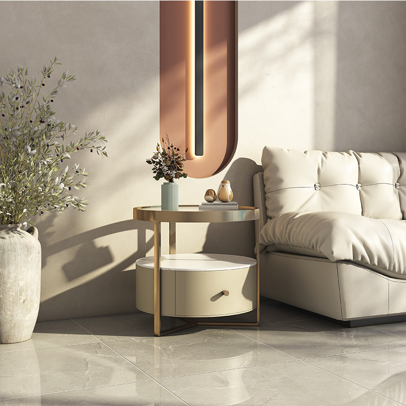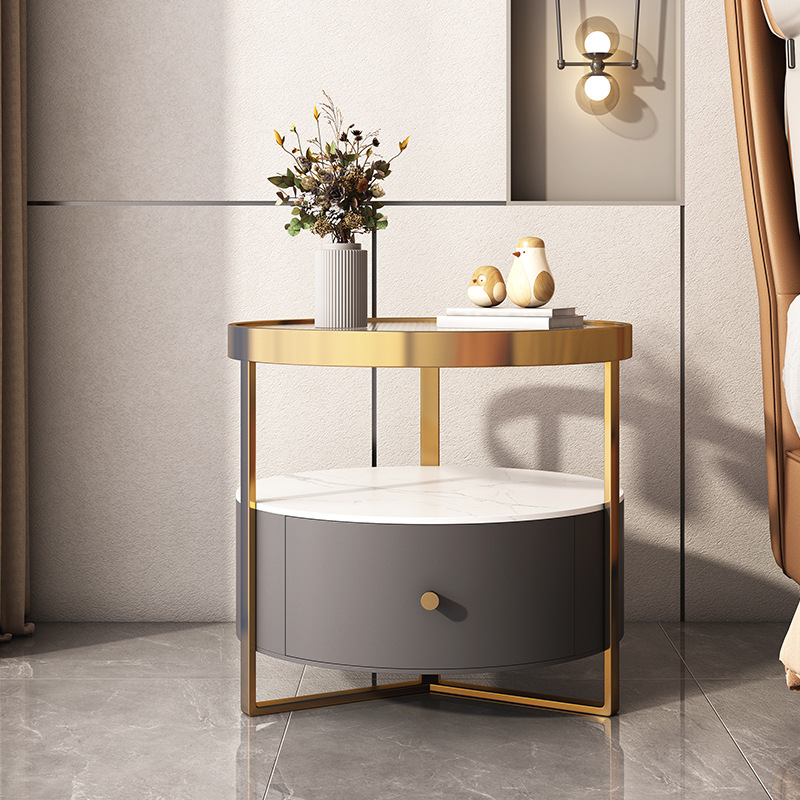 This elegant nightstand features a champagne-luster stainless steel frame with a smooth electroplated finish for a luxurious touch. Its super crystalline stone top offers stunning texture, scratch resistance, and stability, while the silent slide drawers ensure smooth, durable functionality. A perfect blend of beauty and practicality.