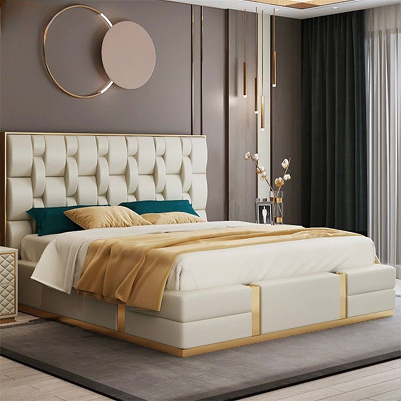 Symmetric Upholstered Leather Queen Bedframe Gas Lifting