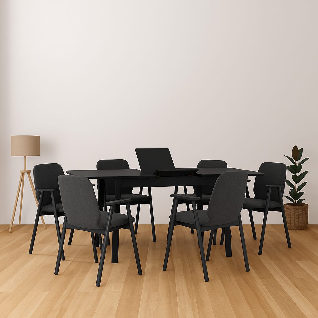 Extendable Dining Table Set – 6 Chairs in BLACK