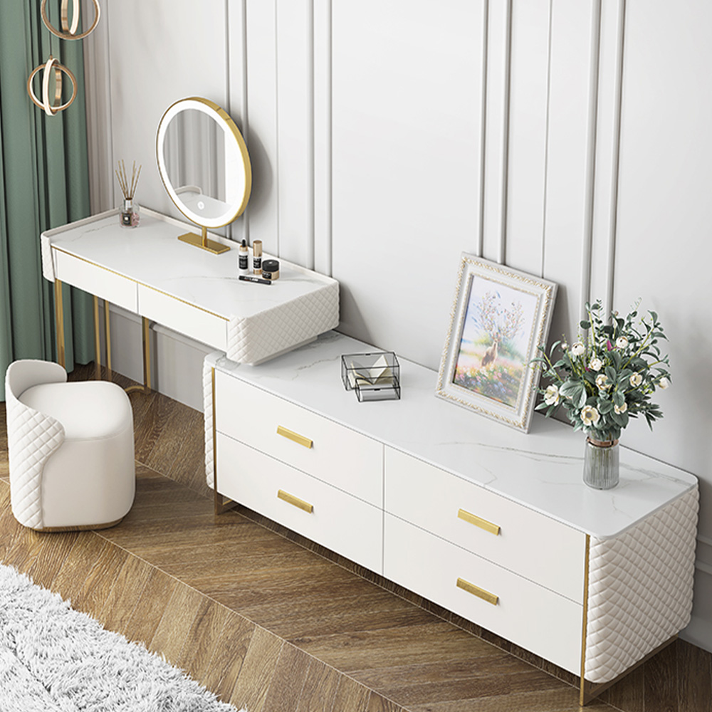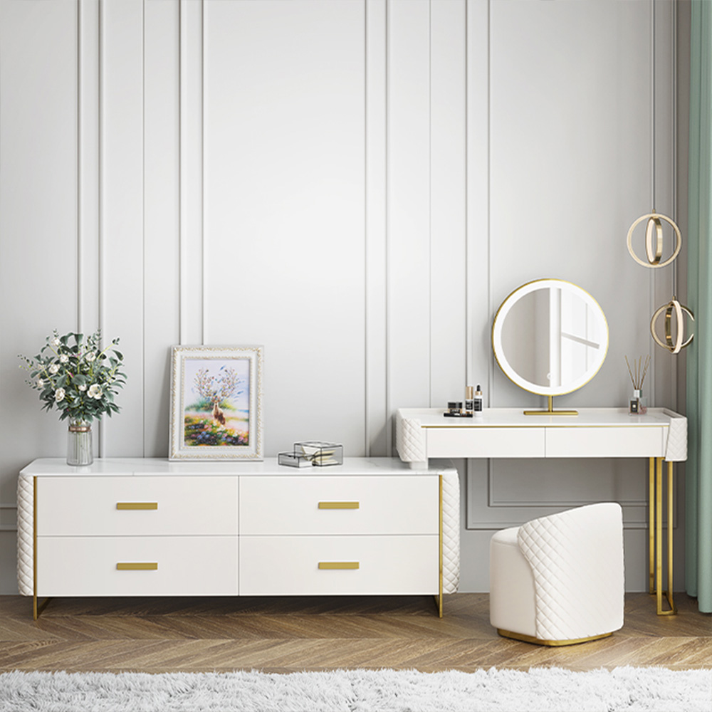 Elevate your bedroom with the luxurious Versailles Vanity Set, crafted for those who value refined beauty and everyday functionality. This stunning piece blends a marble tabletop, covered in premium leather, and gold stainless-steel accents to create a vanity that feels both modern and timeless.