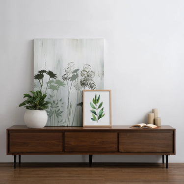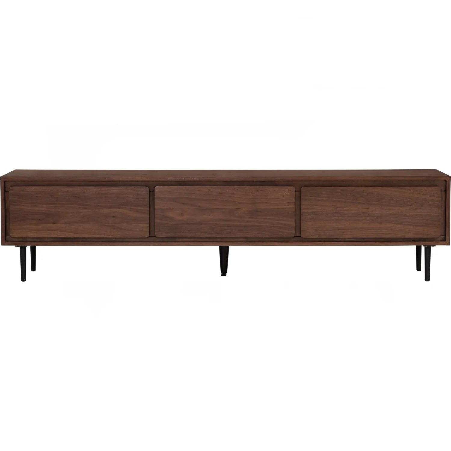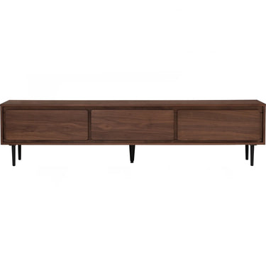 Hutto 1.8M TV Cabinet in Walnut veneer body with Matt Black Epoxy leg, a perfect addition to elevate your home entertainment experience. Its generous 1.8-meter length accommodates large screens and offers ample storage space. The rich walnut color adds warmth and style to your living area, making Hutto 1.8M TV Cabinet TV Cabinet a functional and aesthetically pleasing choice for your entertainment needs.