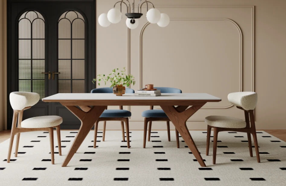 Material: Sintered Stone Top/Solid Wood Top (Customizable) + Solid Wood Legs
