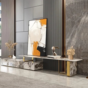 This 3M Maradyne Marble Extendable TV Stand is crafted from all marble body and top finish, paired with stainless steel detailing for a sophisticated and durable look. Starting at 1.8M and extending up to 3M, it adapts effortlessly to different room sizes, making it ideal for living rooms, bedrooms, villas, hotels, or office spaces.