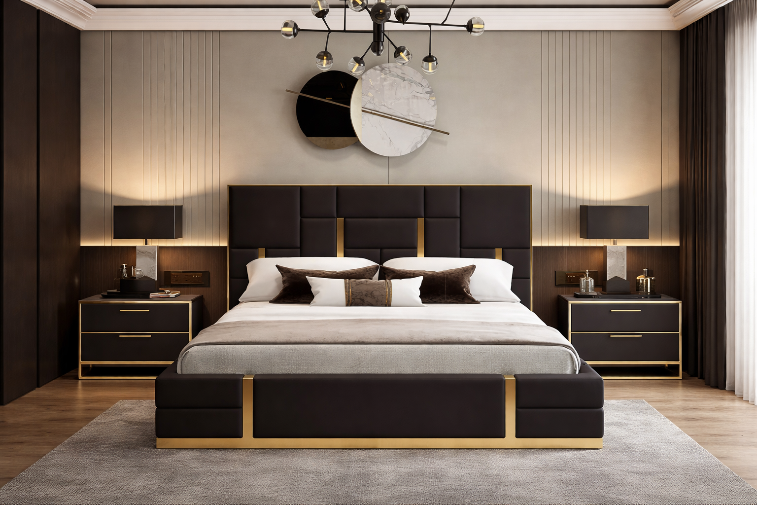 Signature Luxury Black Symmetric Queen Gas Lifting 3 Piece Bedroom Suite