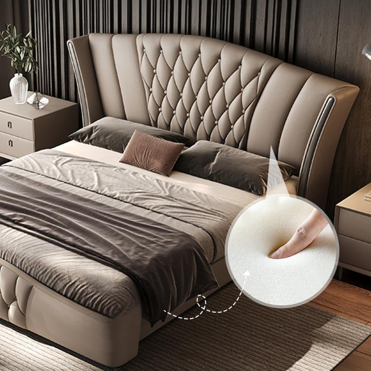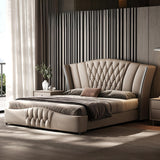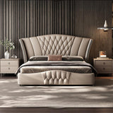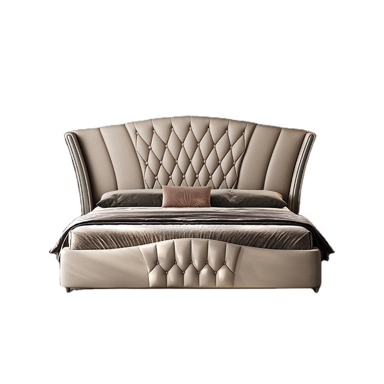 Imperial Luxury Upholstered Leather Solid Wood Silver Brushed Bed Frame