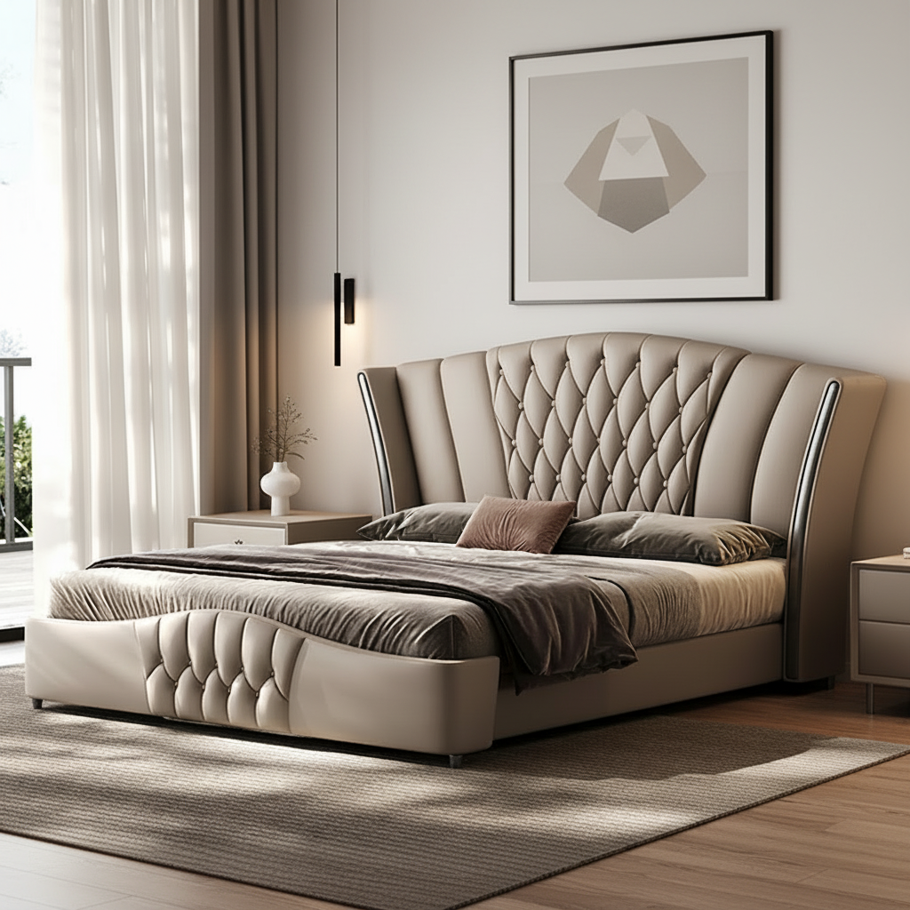 With its versatile neutral tone and timeless silhouette, the Raphael Bed complements a wide range of interiors—from contemporary apartments to luxury homes.