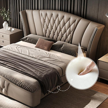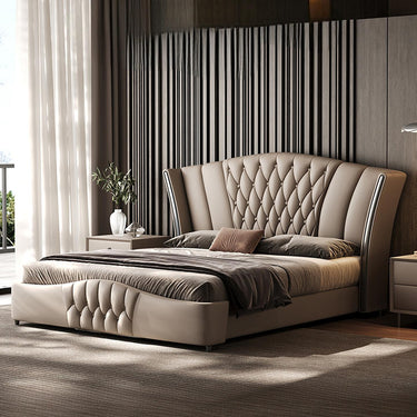 Fully upholstered in premium leather, the Raphael Bed delivers a soft, smooth texture with a naturally luxurious feel. The generously padded headboard offers exceptional support—perfect for relaxing, reading, or unwinding in style.