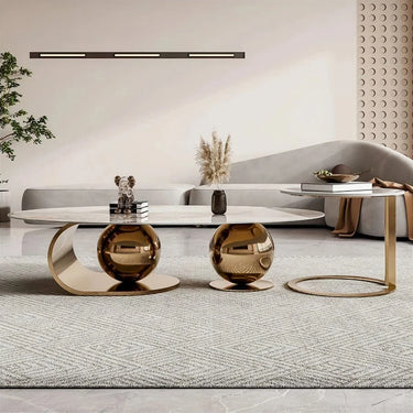 Jewel Gold Marble Coffee Table Set — Italian-Inspired Luxury in a Solid Marble Stone