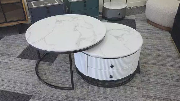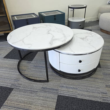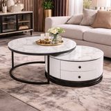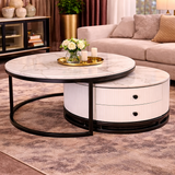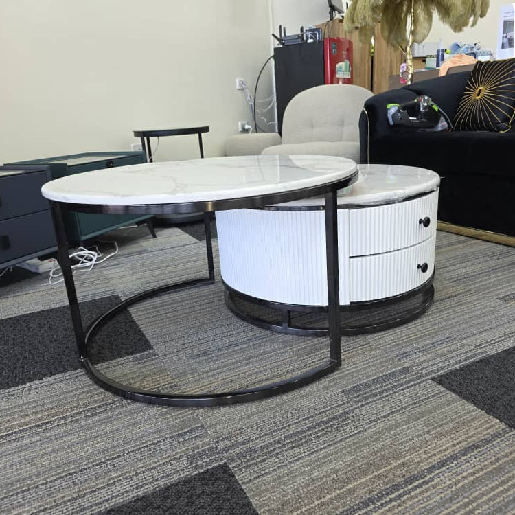 🟢 IN STOCK -Opulent Titanium Black Solid Snow Mountain Marble Nesting Coffee Table Set