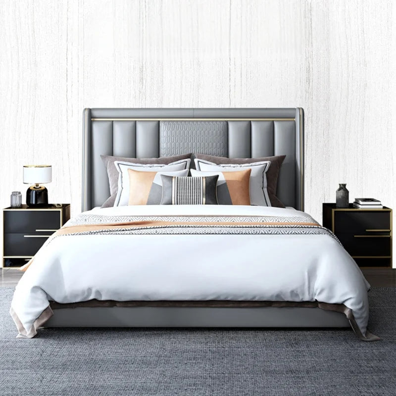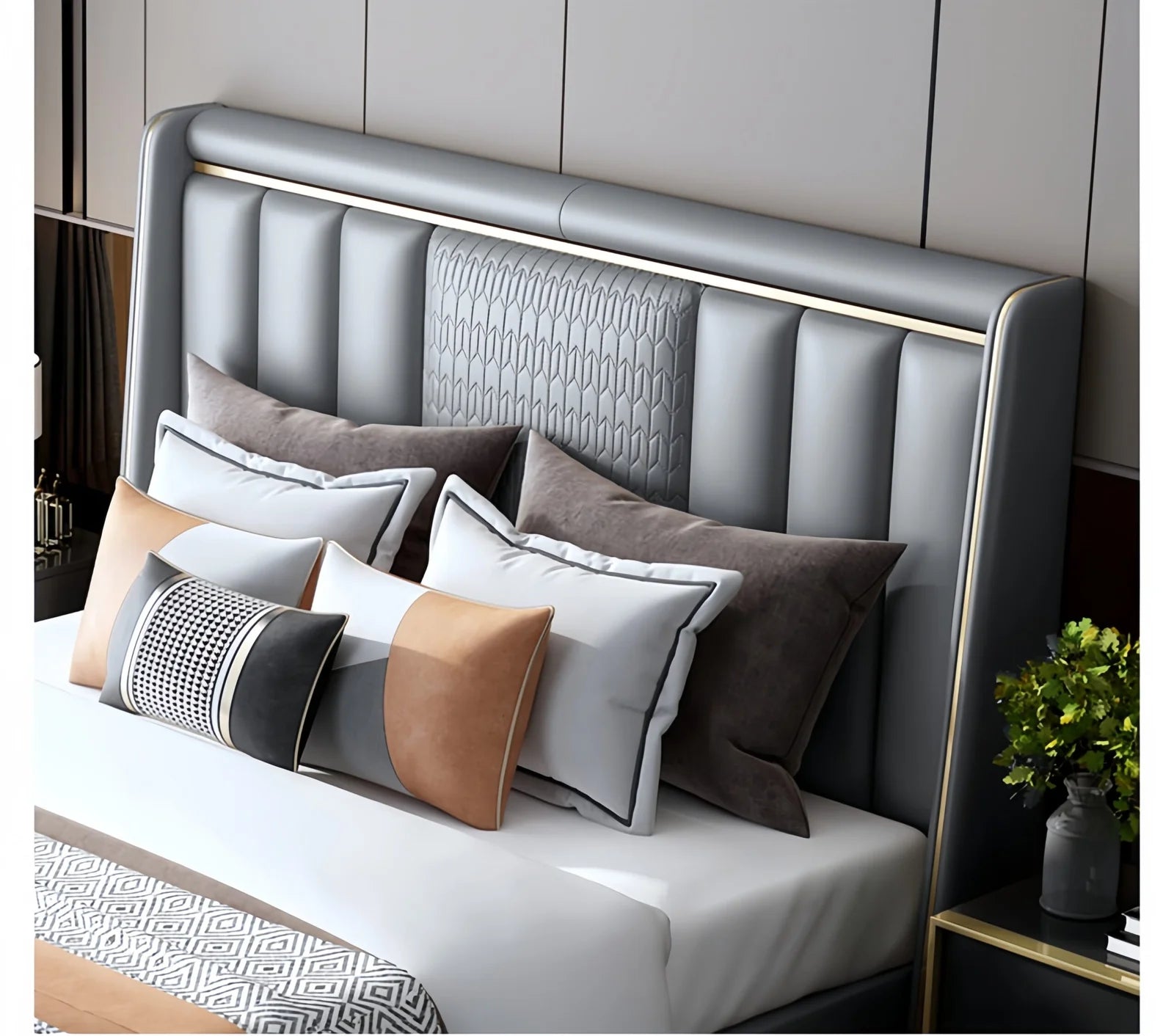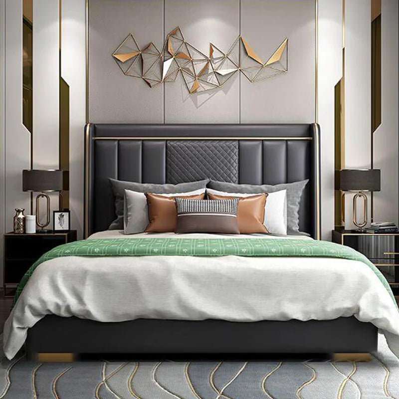 Its gracefully curved silhouette adds a soft, artistic touch, creating a statement of refined elegance that enhances any bedroom interior. The bed is elevated with titanium-plated accents, offering a sleek, modern finish that is resistant to corrosion, fading, and everyday wear, ensuring lasting beauty over time.