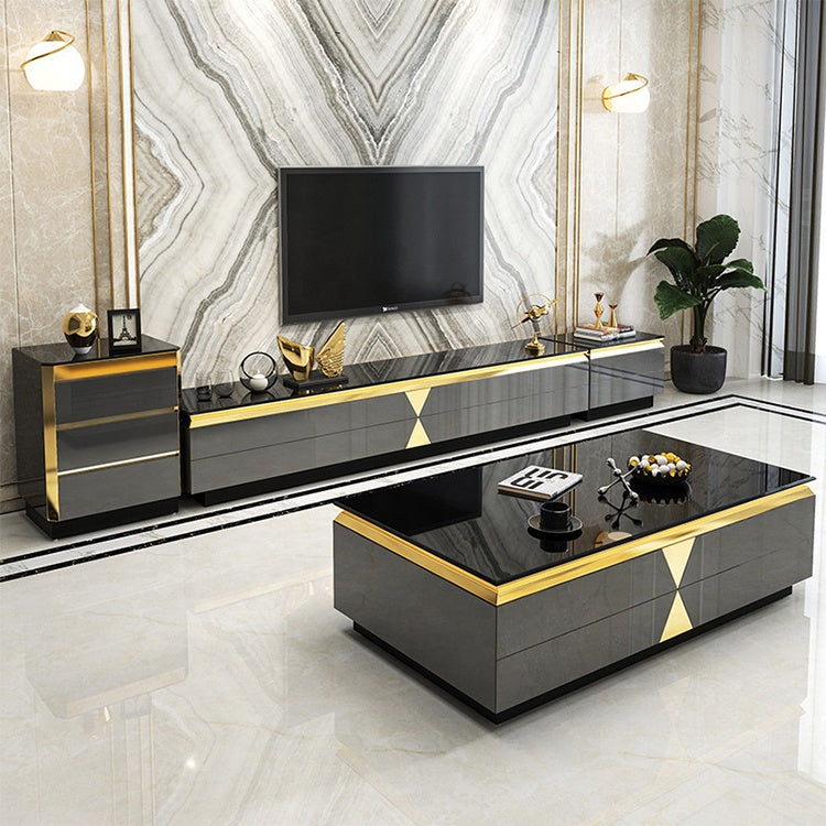 Sangria Luxury Tempered Glass Top High Gloss Paint Solid Wood TV Stand Cabinet Unit