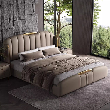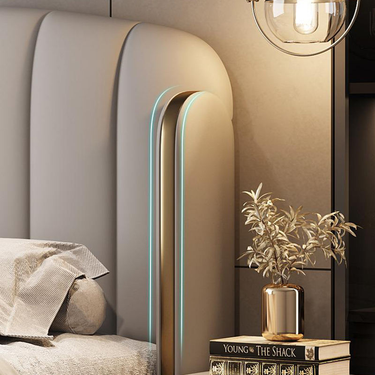 Fully upholstered in premium leather, the Raphael Bed delivers a soft, smooth texture with a naturally luxurious feel. The generously padded headboard offers exceptional support—perfect for relaxing, reading, or unwinding in style.