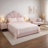 Built with high-density foam, a solid larch wood frame, and carbon steel feet, this suite offers exceptional durability, stability, and quiet sleep. The curved headboard, golden accents, and detailed stitching create a refined, contemporary look that elevates any bedroom.
